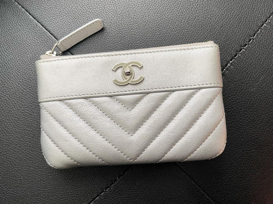 • Chanel Wallet on Chain Lambskin Chevron Quilted Trendy Cc Woc Light Bl Blue Leather Cross Body Bag