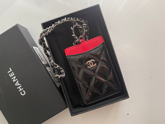 • Chanel Quilted Phone Holder In Black Caviar Leather Cross Body Bag (2020)