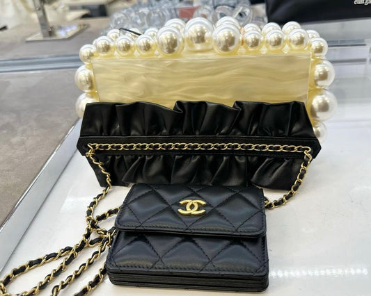 CHANEL Small Black Trendy Mini WOC 🖤 Wallet On Chain Card Coin Flap Bag