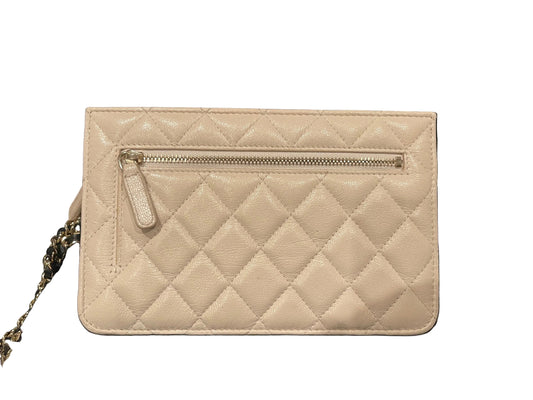 Chanel Goatskin Quilted Tri-Color In & Out Chain Wallet Beige w Black Pocket