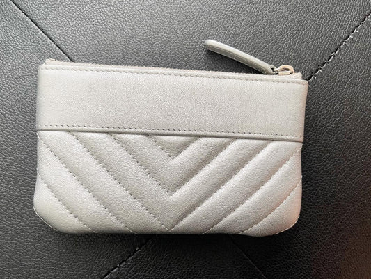 • Chanel Goatskin Quilted Tri-Color In & Out Chain Wallet Beige w Black Pocket
