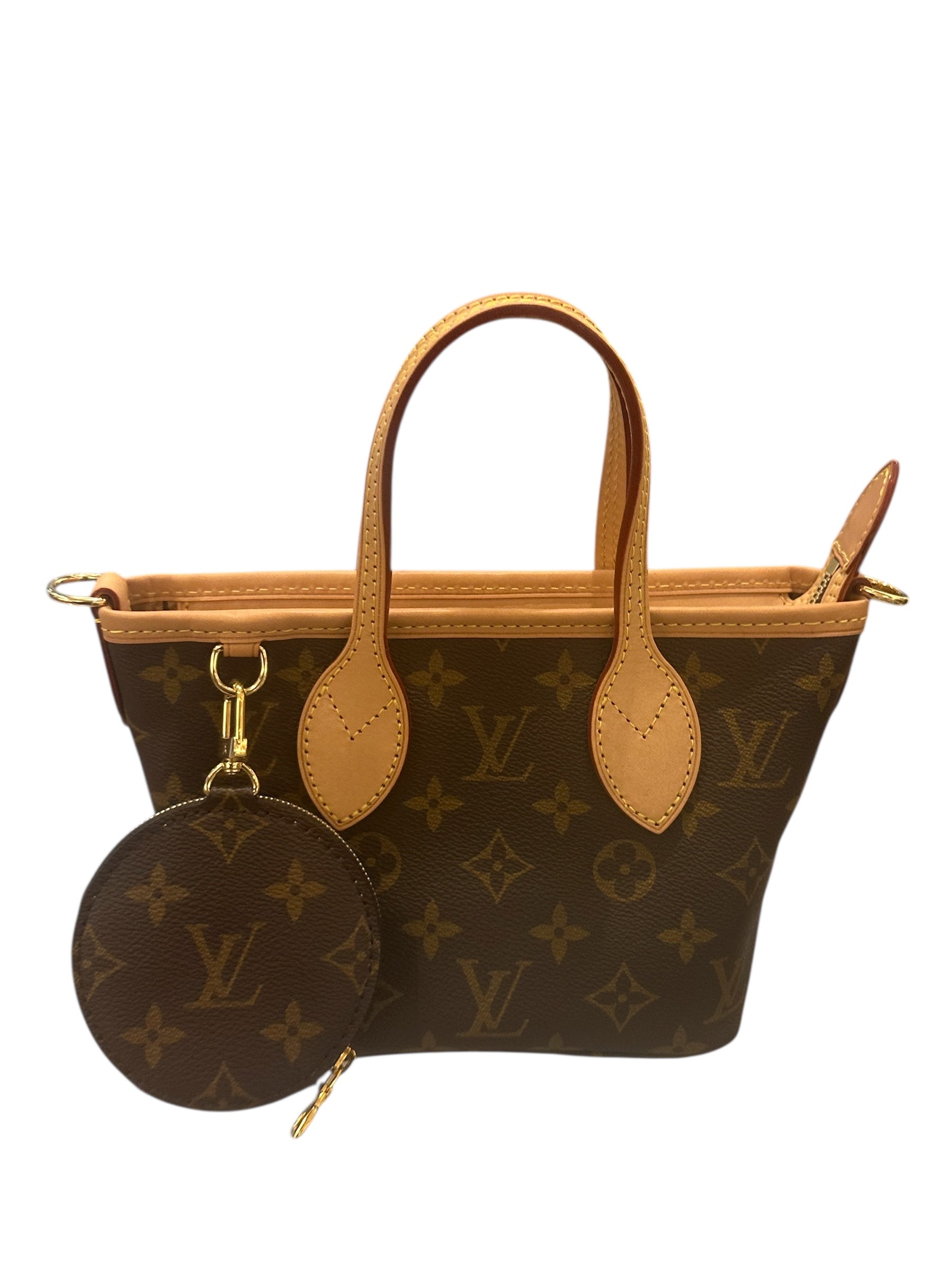 This season the House’s forever favorite, the Neverfull, gets reinvented as a mini-tote: the Neverfull BB handbag. This scaled-down version features an adjustable and detachable textile strap as well as a playful coin purse attached to a D-ring. It is just the right size for small essentials like a smartphone and compact wallet.
