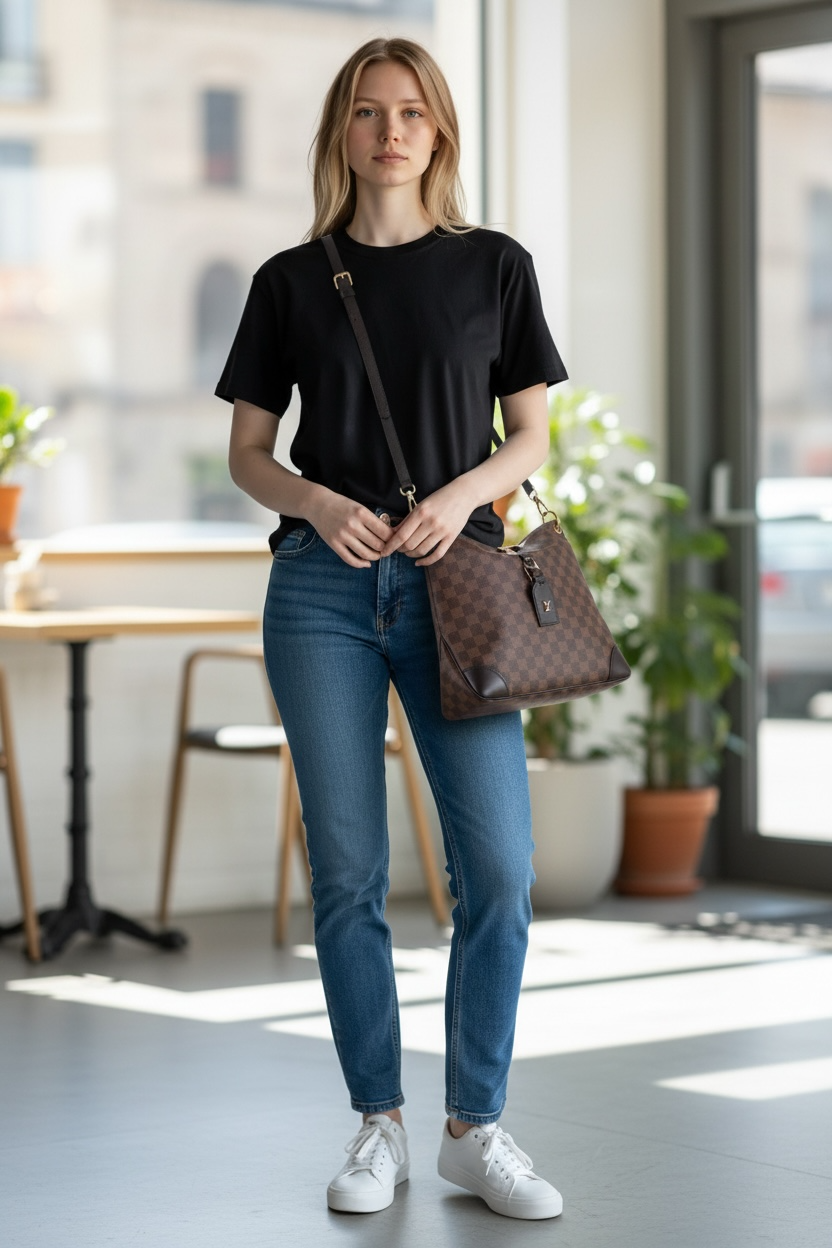 Versatile and solidly on-trend, the Odeon MM bag is made from Damier Ebene canvas and finished with black leather trim, corners, and a name tag for a timeless feel. The body-friendly design and large capacity make it ideal for everyday use. The adjustable leather strap allows two carry options: shoulder and cross-body.
