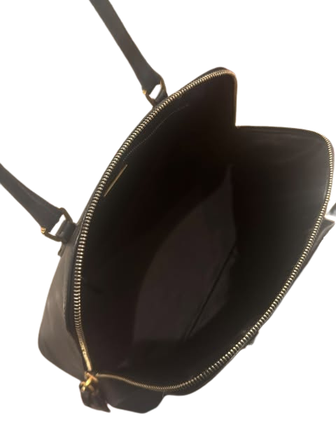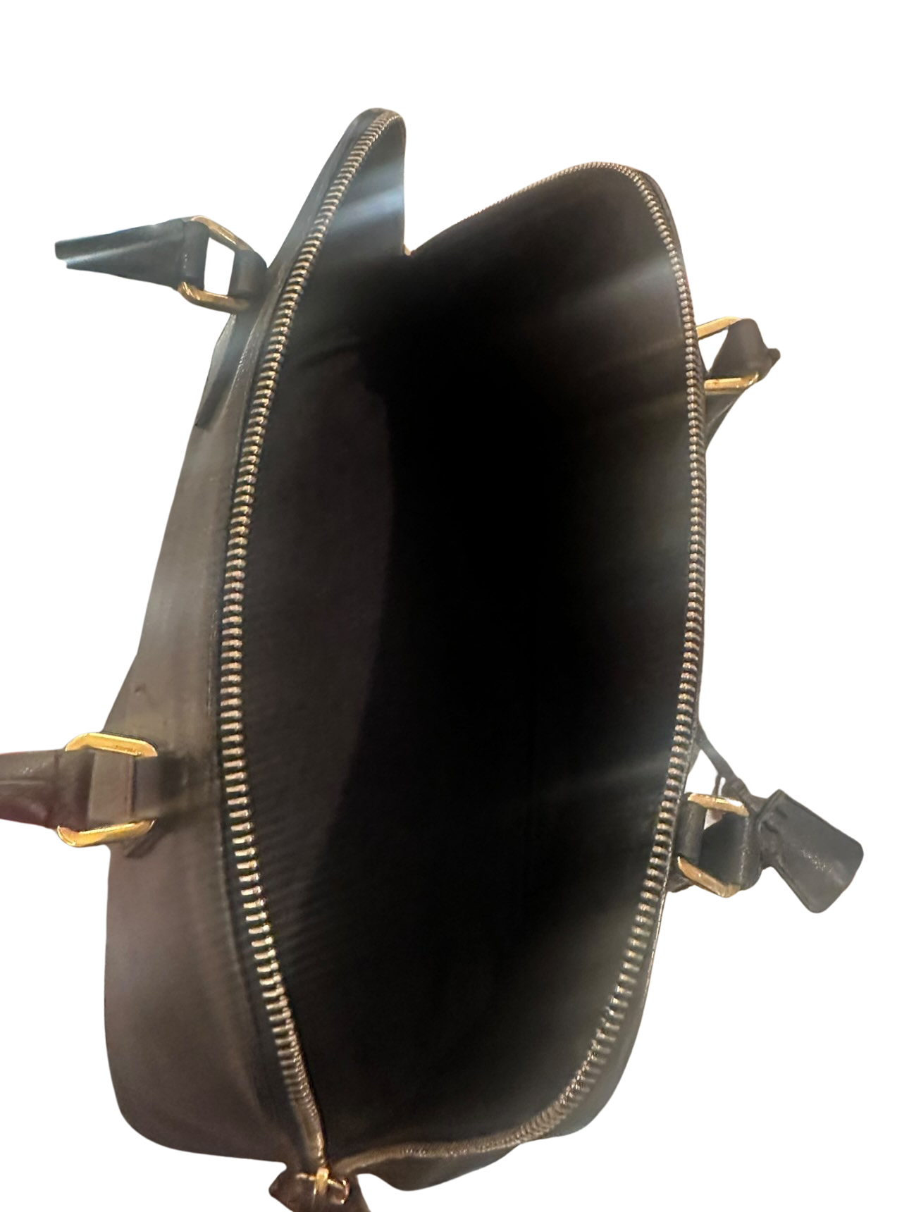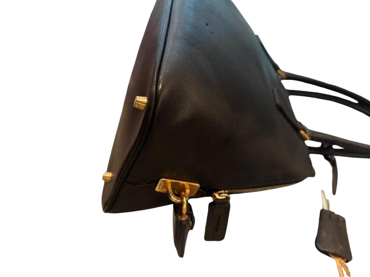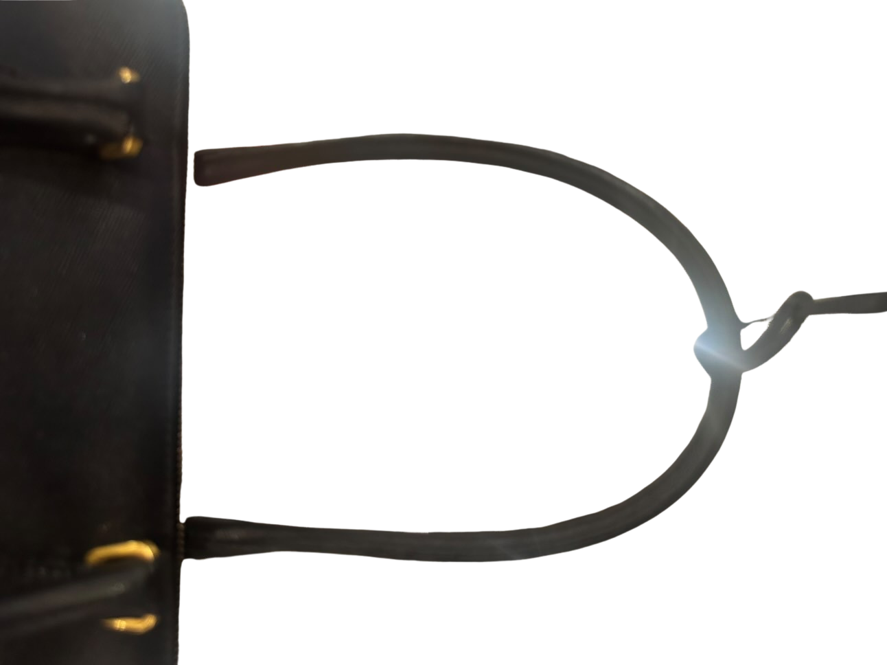 Authentic, pre-owned Prada Saffiano Leather handbag, crafted from durable cross-grain leather and finished in classic black with gold-tone hardware. Its structured silhouette makes it perfect for everyday wear while maintaining a timeless, luxurious look.
