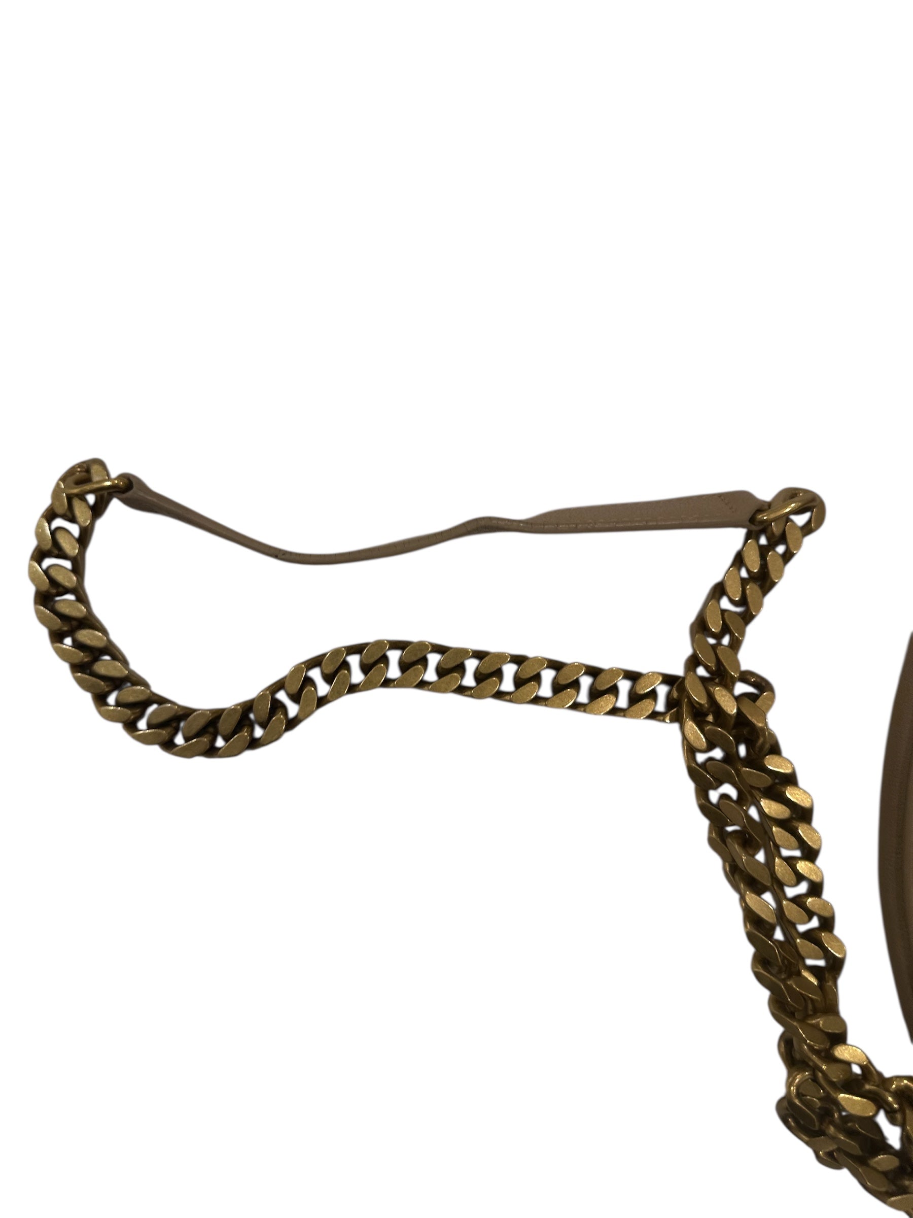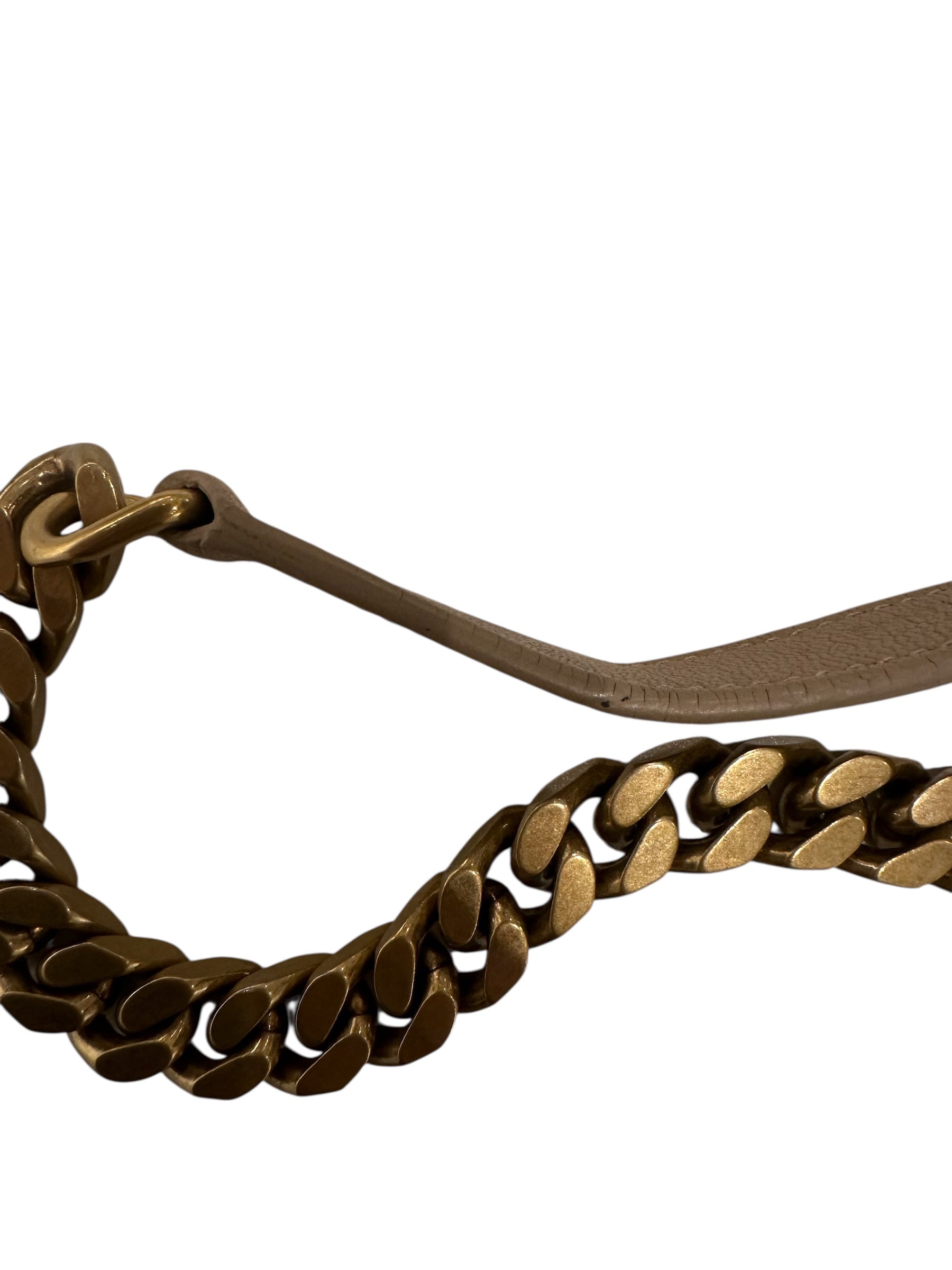 Light rubbing on ends, unnoticeable scratches on hardware, the leather trim in strap has light glazing rubbing, is shown in the pic, other than that bag is in excellent condition.There is crease on leather strap attaching to the chain.